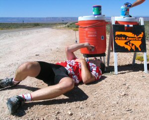 Besides lunch, Cycle America also provides a waterstop at the 1/4 and 3/4 points of each day. This consists of two 5-gallon coolers sitting out there on the edge of the road.