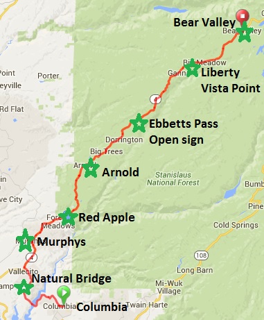 Day 3 - Columbia to Bear Valley - 52 miles, 7900 ft |